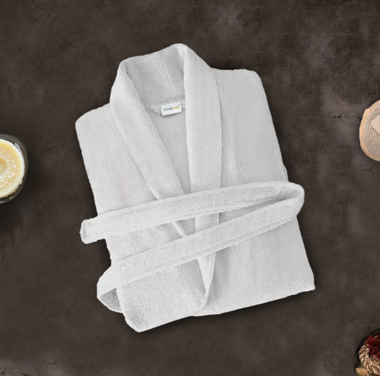 Premium 100% Pure Cotton Terry Bathrobe with Pockets, 5 Colors One Size Fits All with Free Bath Slippers