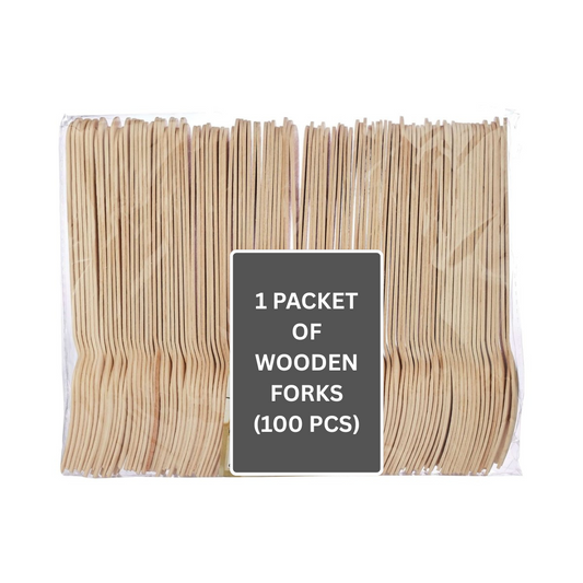 2000 PCs Carton of Disposable Wooden Forks – Eco-Friendly, Compostable & Food-Grade | 1 Packet: 100 PCs | Size: Standard Fork | Color: Natural Brown | Category: Wooden Cutlery