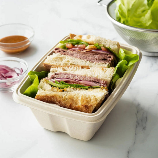 300 PCs of 750ml Rectangular Biodegradable Bagasse Containers with Lid – Eco-Friendly, Anti-Leak & Disposable | Size: Length 19.5 cm × Breadth 15.5 cm × Height 5.5 cm | Shape: Rectangular | Color: Brown | Category: Containers